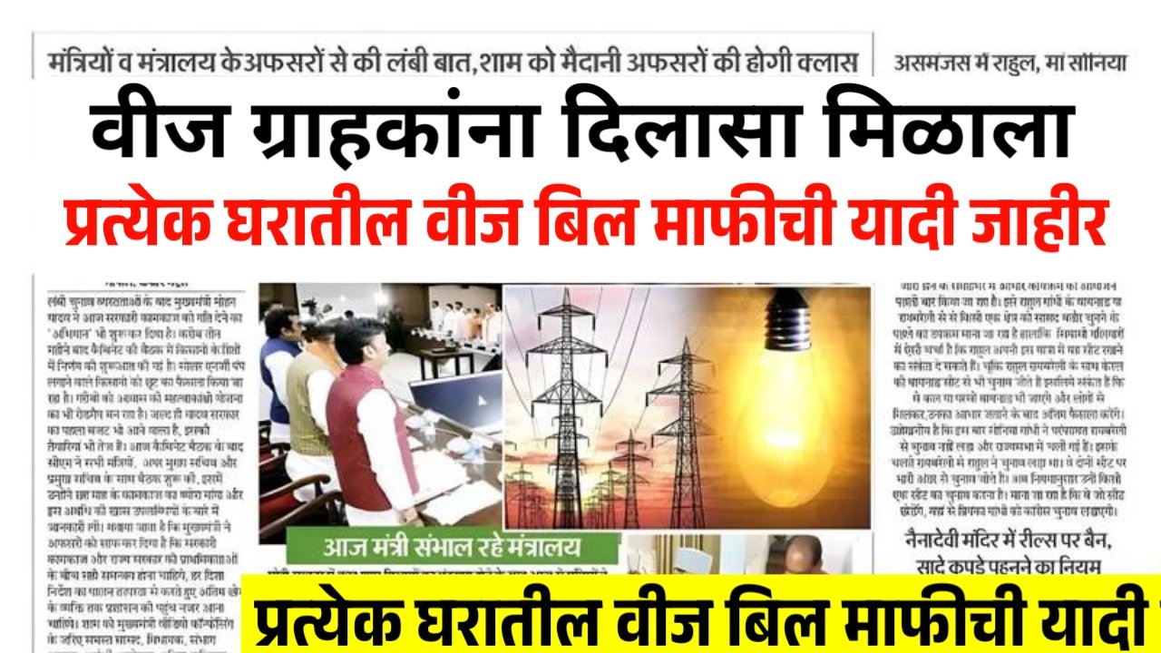 Bijli Bill Mafi Yojana 2025 : वीज ग्राहकांना मोठा दिलासा, प्रत्येक घरासाठी मोफत वीज बिल सुरू